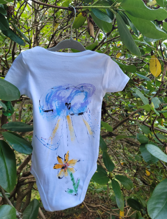 "Wisps of Blue" Hand Painted Onesie